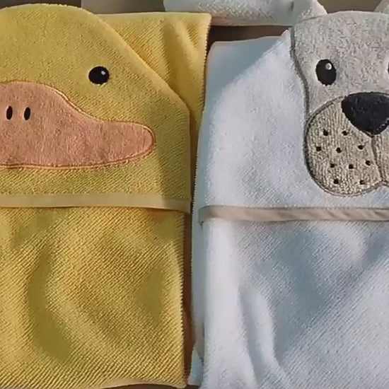 š¶ Adorable Cartoon Hood Design ā Cute animal patterns (dog, duck, fox, hippo & more) make bath time fun for babies & toddlers.