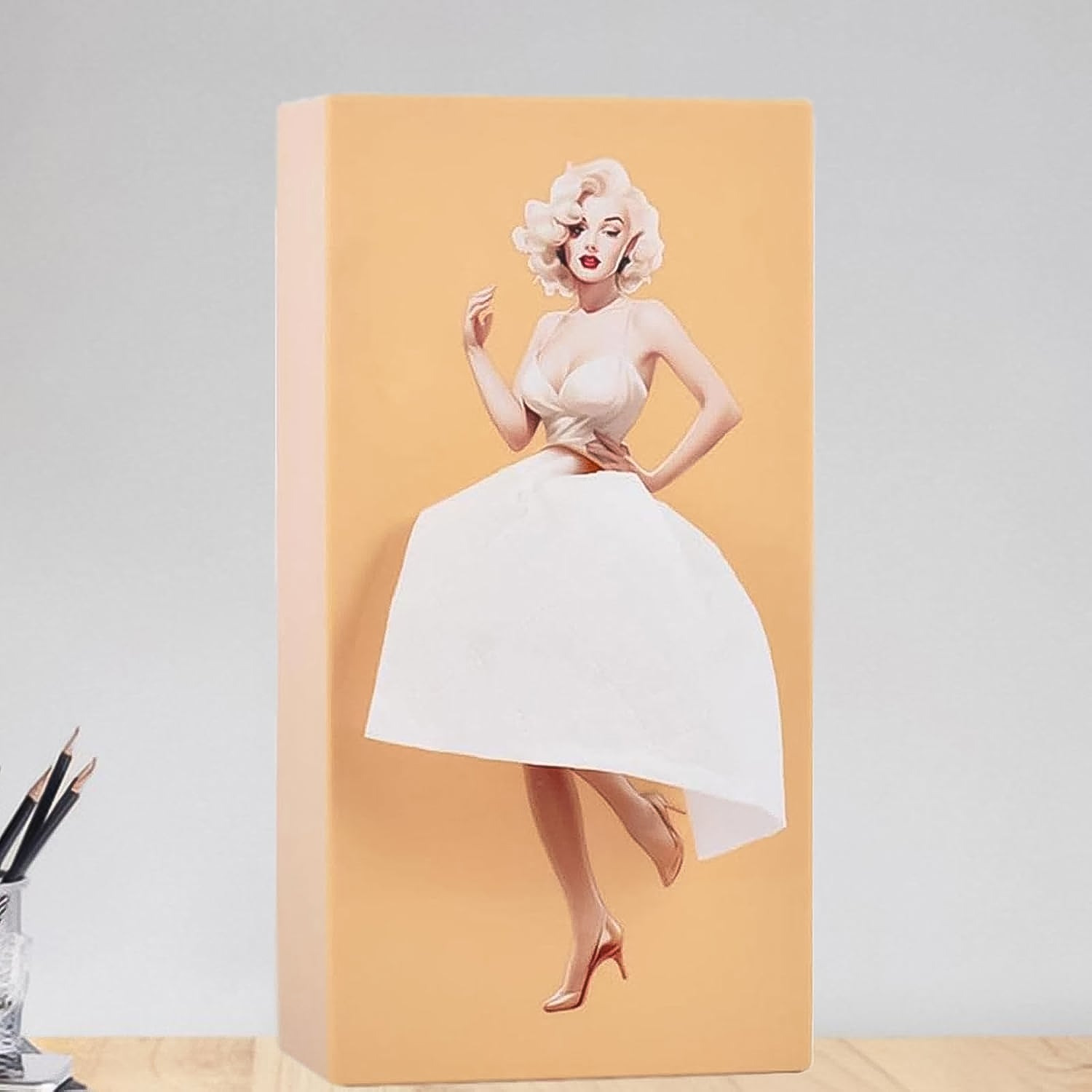 Add a touch of humor and creativity to your living space with this Creative Tissue Dispenser Box, featuring a unique retro-style girl design that is sure to catch everyone's attention. This multi-functional tissue holder combines fun with utility, making it a perfect addition to your home, office desk, dining area, or even your car.